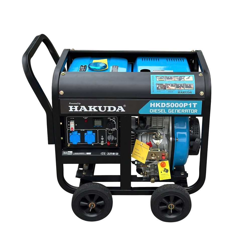 Máy phát điện chạy dầu 5KW HAKUDA HKD5000P1T là thiết bị cung cấp điện dự phòng phổ biến, thích hợp cho cửa hàng, gia đình có sân vườn hoặc công trường xây dựng quy mô vừa và nhỏ. Máy 5KW HAKUDA HKD5000P1T có thiết kế chắc chắn, dung tích bình nhiên liệu lớn, giúp hoạt động liên tục trong nhiều giờ. Ngoài ra có tính năng đề nổ, tiết kiệm nhiên liệu và bảo vệ quá tải.